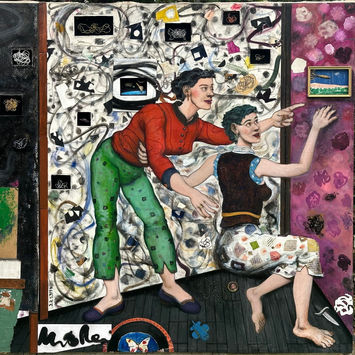These are some of my "stand alone paintings- as differentiated from my Salome "big paintings cycle (not yet photographed for this overall site), my 15 works Odyssey cycle, et al., - oils and constructed works made with paint. I include  a detail after each work, and then below more details of the works.